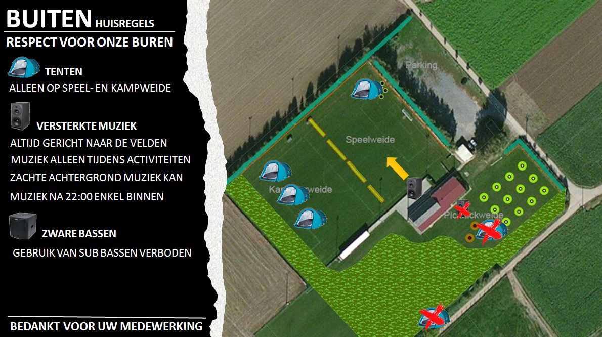 * WC-wagen aan het kampvuur mag enkel bij de zomerkampen gebruikt worden. Zéker ook checken en afsluiten bij check-uit (groene sleutel).
